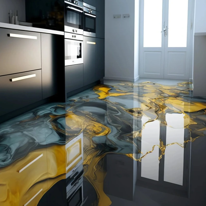 Epoxy coating is one of the most practical and stylish solutions for kitchens, where durability and hygiene are top priorities.